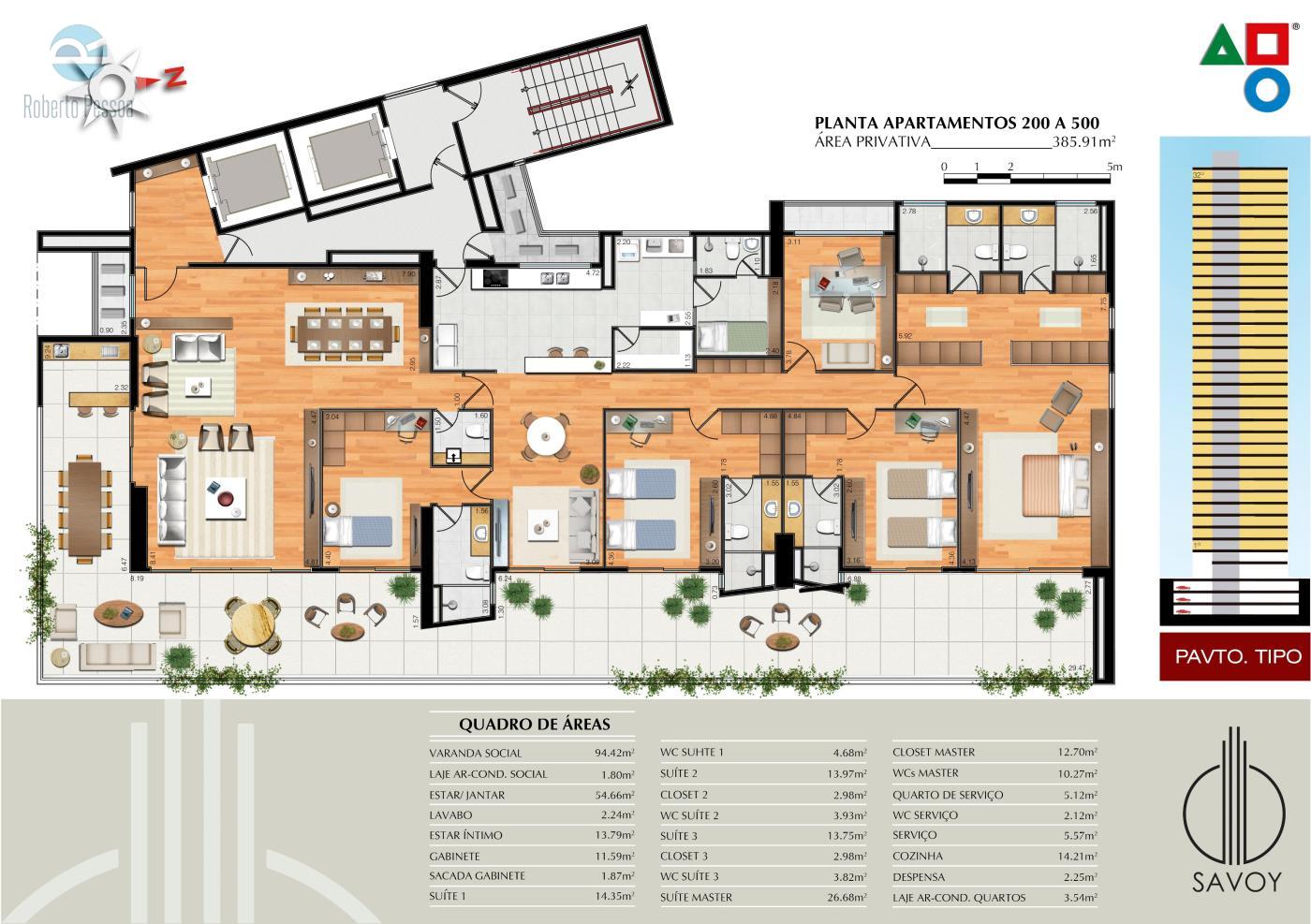 Tipo A - 385,91m²: (Ap. 200 a 400)