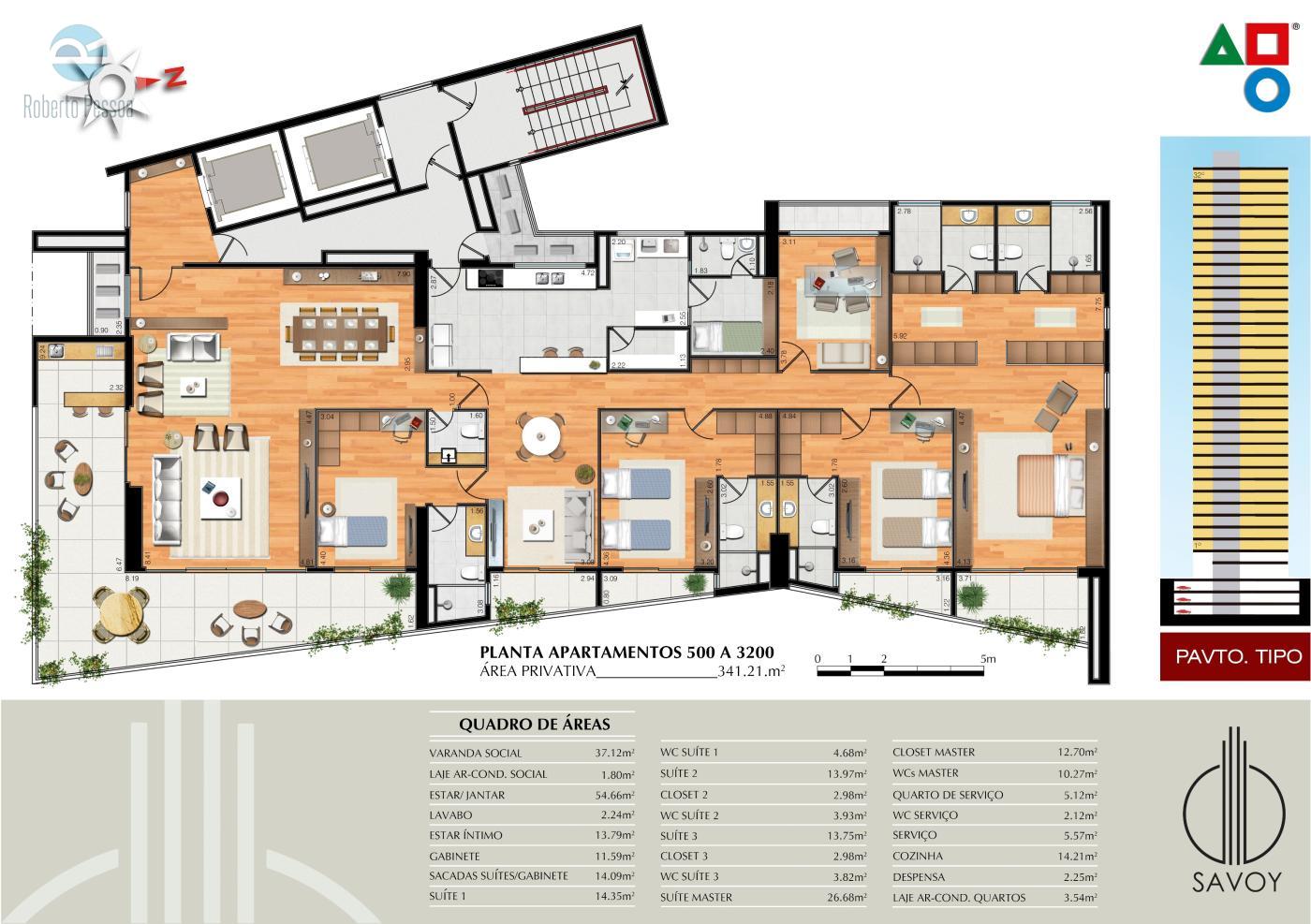 Tipo B - 341,21m²: (Ap. 500 a 3300)