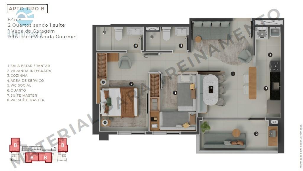 - Apartamento com área privativa de 64,00 m²;
