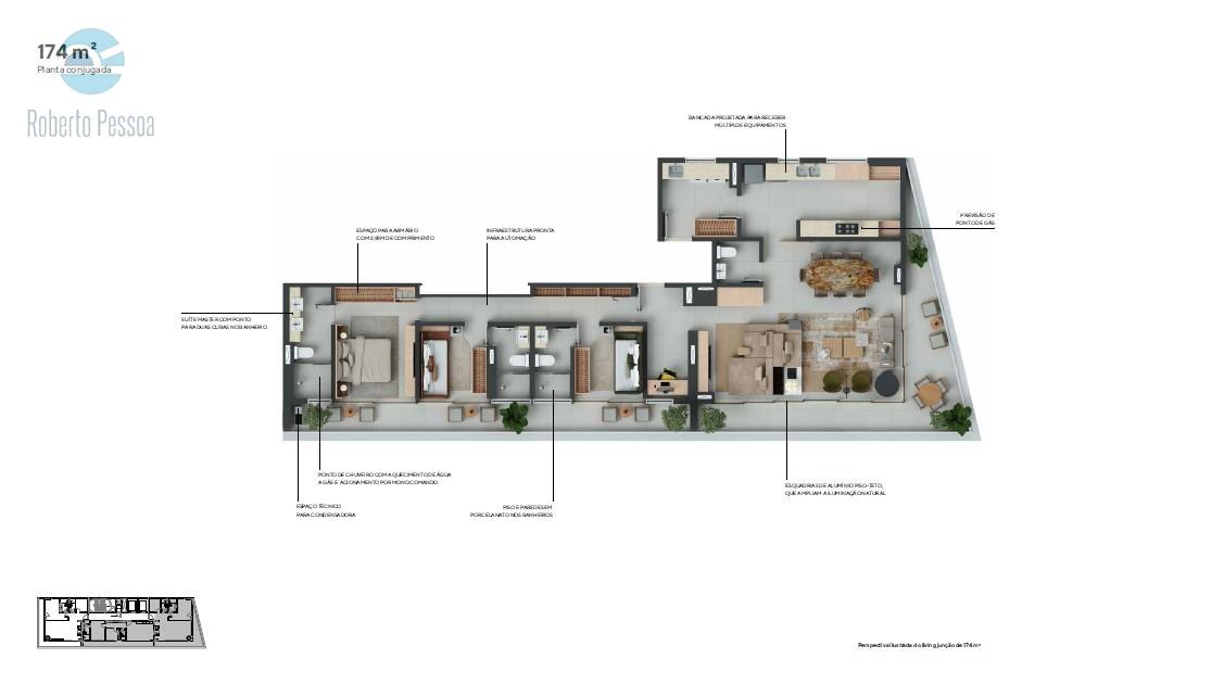Planta conjugada: 174 m² | 3 Suítes